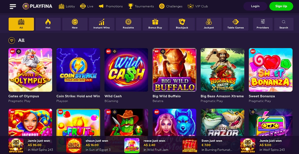At Playfina, we believe in providing our players with the best of the best, which is why we've curated a collection of the most popular and innovative casino games on the market. Whether you're a fan of classic table games like blackjack and roulette, or you prefer the thrill of cutting-edge slots and live dealer games, you'll find plenty to keep you entertained at Playfina.